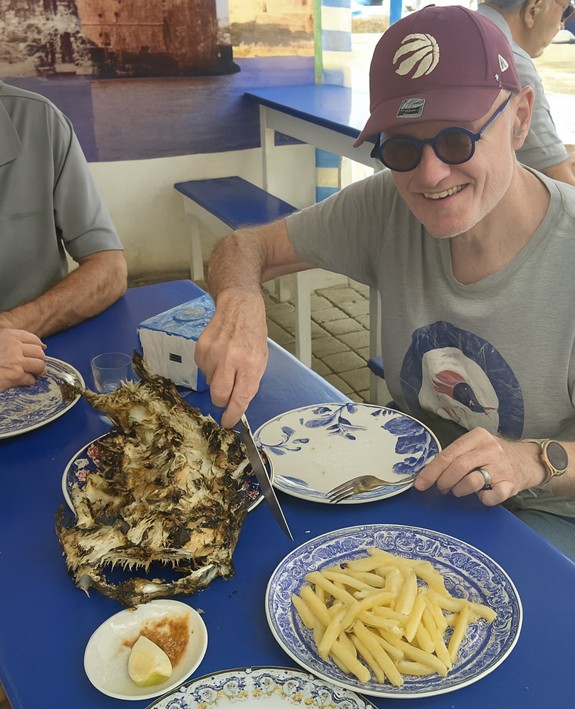Upon arrival, we skipped the usual hotel check-in routine and went straight to the fish market. Maybe not the cleanest place in the world, but the food is simple and perfect. Dozens of restaurants compete for your attention. We settled on a place that served monkfish, shrimp, langoustines, salad, and fries. Nothing fancy—just fresh, grilled, and perfect.