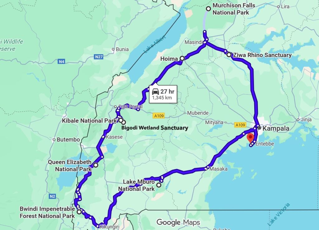 The drive from Bwindi to Kampala takes about nine hours without stops. We broke it up with an overnight stay at Lake Mburo National Park, roughly halfway to Entebbe.